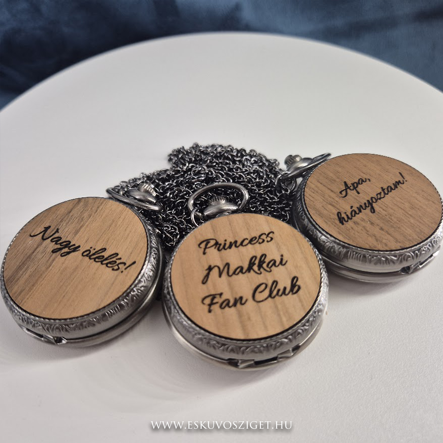 A zsebóra fa előlapja gravírozható, így extra különleges ajándékot adhatsz át.