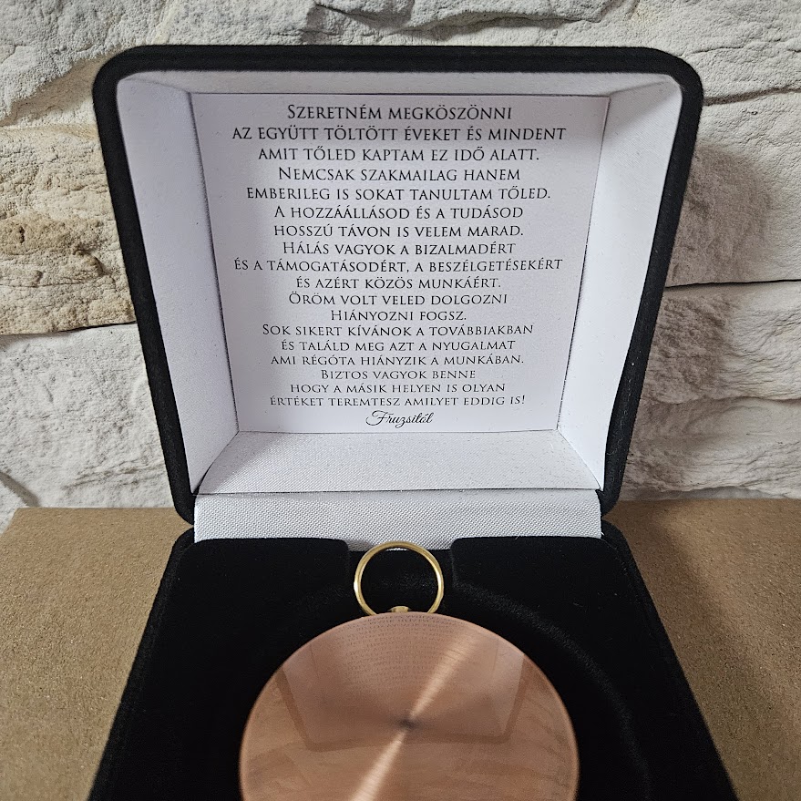 Rosegold árnyalatú, minőségi réz iránytű, ami gravírozható, ezáltal még személyesebbé tehető. A bársony vagy lakkozott, eko műbőr belsővel ellátott díszdobozaink is egyedileg feliratozhatók, személyes üzenet vagy egy szívélyes vallomás is kérhető rá.
