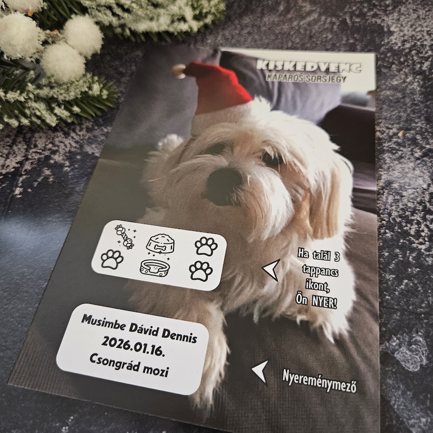 Kiskedvenc kaparós sorsjegy, amit kívánságod szerint készítünk! Bármilyen kisállat kérhető rá.