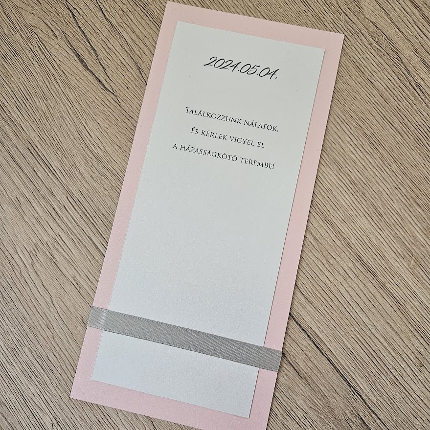 A felkérő többféle színvariációban rendelhető, így könnyedén igazítható az esküvő stílusához, a dekorációhoz vagy akár a személyes ízléshez.