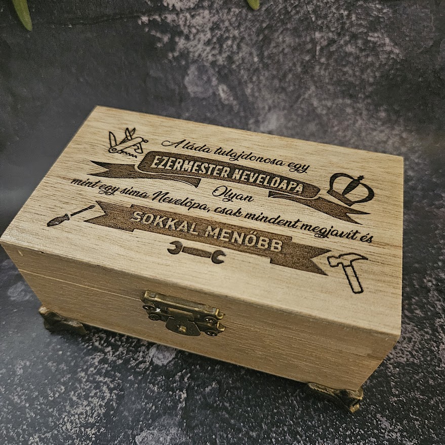 Gravírozhatsz bele nevet, dátumot, vagy egy Szeretlek feliratot, a díszdoboz tetejére akár egy hosszabb szöveget is. (pl. a képen).