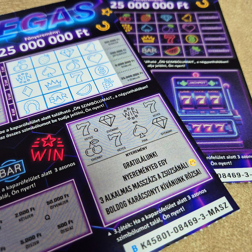Magyarországon egyedülállóan csak nálunk: a kaparós felületek is egyedi grafikával ellátottak, mint az igazi kaparósokon! A legújabb technológiával készült kaparós sorsjegy.