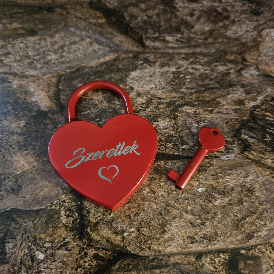 Szuper különleges, szív formájú szerelem lakat és a hozzá tartozó kulcs.