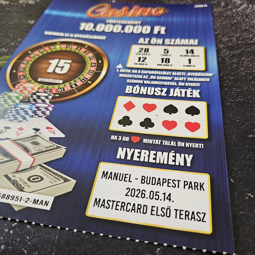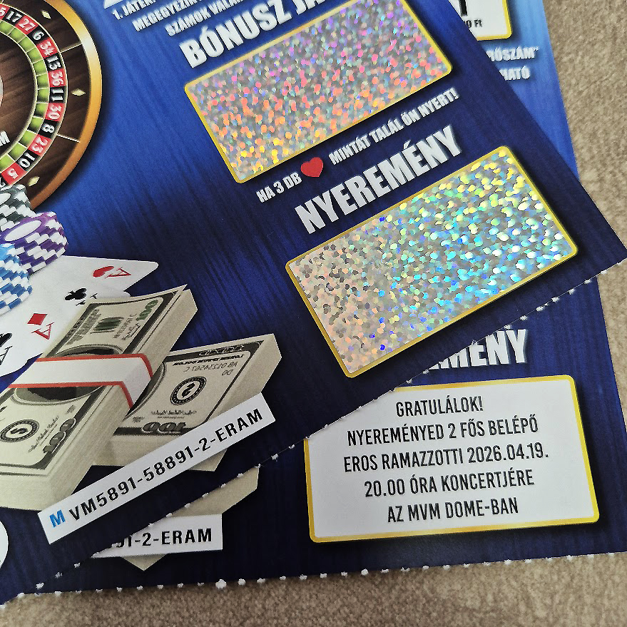 Casino témájú kaparós felkérő. 4 hologramos kaparós felülettel. Többféle színben elérhető! Garantáltan nyerő, hogy biztosan megkapja nyereményét, amit te fogalmazhatsz meg. Kérheted kétoldalas kivitelben, így a hátoldalán a szokás nyerési táblázat, játékleírás, logók, vonalkódok, stb információk vannak, plusz egy perforálást is kap a széle, amitől tényleg úgy néz ki, mintha a lottózóban most tépték volna le a többi közül... Ajánljuk bababejelentéshez is, ami maga a főnyeremény!